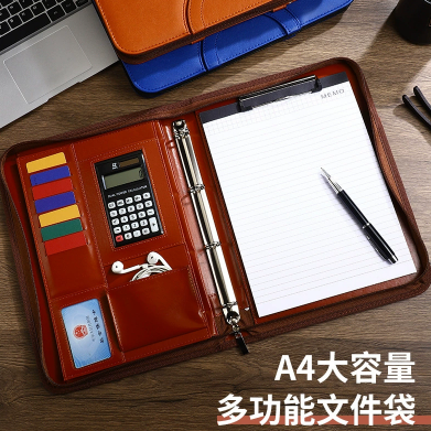 A4拉链手提公文包办公经理夹活页夹商务多功能PU文件夹交房包
